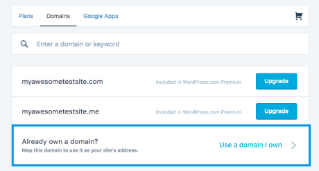 Ulogujte se na wordpress.com i zatim idite na Domain stranu.