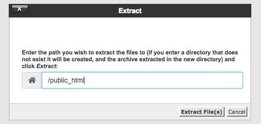 cPanel će vas pitati da li ovde želite da uradite raspakivanje, pa slobodno potvrdite klikom na dugme Extract File(s):