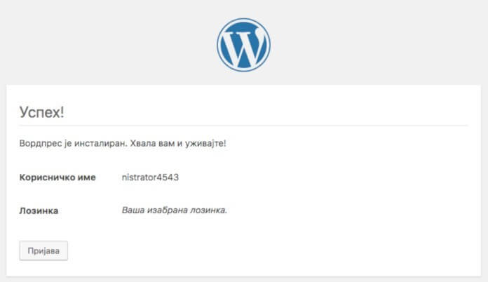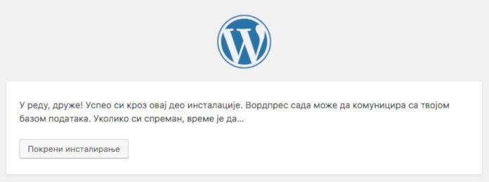 A ovo je potvrda o uspešnoj instalaciji WordPressa.