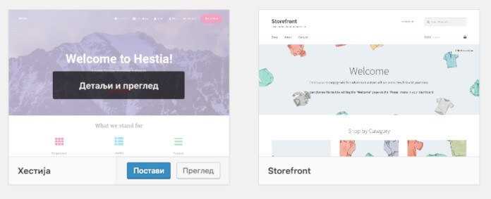 Otvoriće se WordPressov repozitorijum tema gde možete pretraživati i na jedan klik instalirati nove teme. Kada pronađete neku koja vam se svidi, samo kliknite na dugme Postavi i tema će biti instalirana: