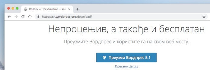 Idite na sr.wordpress.org/download/ i kliknite na dugme Preuzmi WordPress. Ovo će pokrenuti preuzimanje fajlova za instalaciju WordPressa.