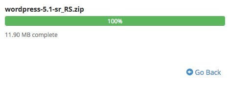 Kada se upload fajla završi, prikazaće se zeleno obaveštenje sa 100% natpisom. Tada kliknite na link Go Back i to će vas vratiti u folder gde je fajl uploadovan.
