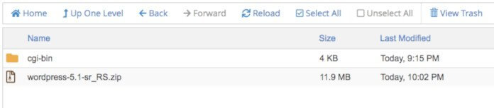 Ako ostavite sve ovako kako jeste, vaš sajt će raditi iz foldera koji se vidi na slici iznad – folder pod nazivom wordpress. Ovo za posledicu ima da sajt radi na sledećoj adresi vaš-domen.rs/wordpress. Da bi vaš sajt radio na lepoj adresi koja glasi vaš-domen.rs, potrebno je da sve fajlove iz foldera /public_html/wordpress prebacite u /public_html.